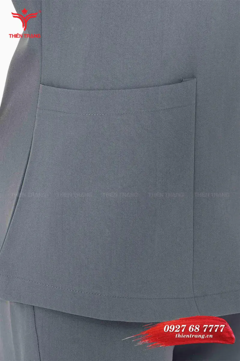 Áo đồng phục spa màu ghi sang trọng với thiết kế chiết eo không chỉ giúp người mặc trở nên gọn gàng hơn mà còn tôn lên đường cong cơ thể. Bên cạnh đó, việc may trang phục Vest màu xám với chất liệu Italy là một trong những bộ đồng phục spa mùa đông giúp đảm bảo cơ thể cho nhân viên luôn được ám áp nhát khi trời lạnh.