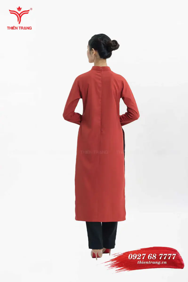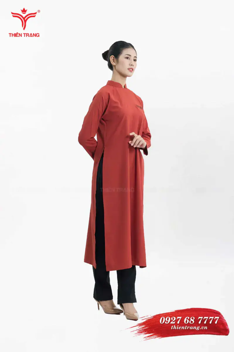 Đồng phục áo dài lễ tân khách sạn TTNHKSLT7 màu đỏ là mẫu thiết kế đồng phục lễ tân khách sạn, sử dụng chất liệu vải phi bóng để đảm bảo chất lượng và độ bền của áo. Được thiết kế với kiểu dáng truyền thống, giúp nhân viên lễ tân thể hiện được sự chuyên nghiệp cũng như nâng cao được hình ảnh đất nước Việt Nam trong mắt du khách nước ngoài.