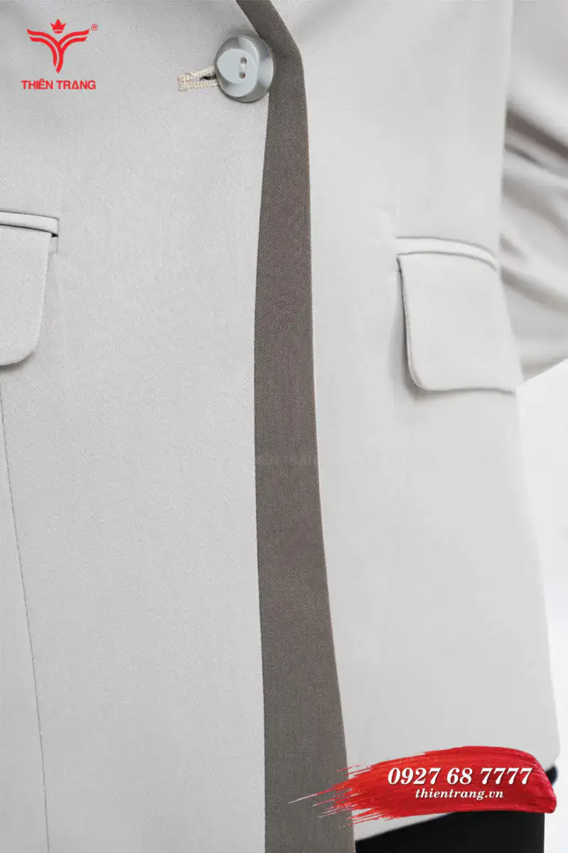 Mẫu đồng phục lễ tân spa TTSPALT3 màu xám là mẫu đồng phục lễ tân spa với thiết kế váy đen bên trong giúp làm nổi bật màu xám của đồng phục. Nút áo màu trắng và túi áo xám trên áo đồng phục TTSPALT3 cũng giúp cho nhân viên xử lý công việc linh hoạt hơn.