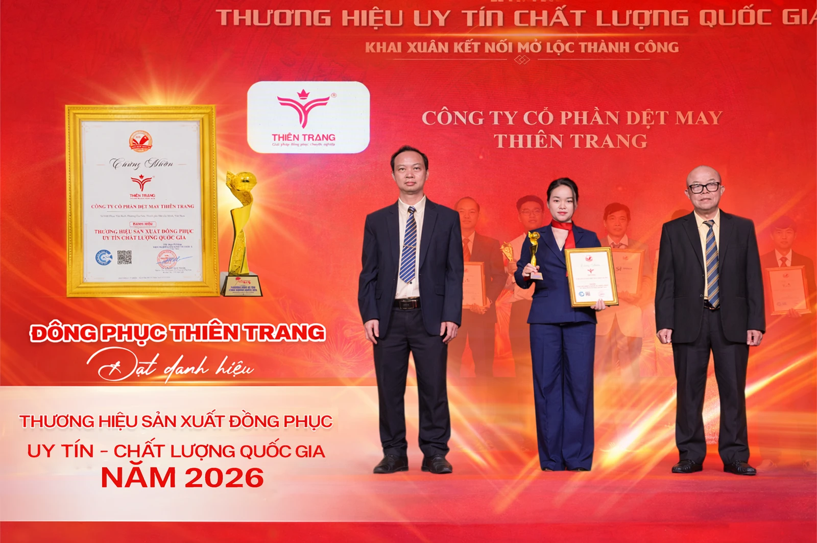 Đây không chỉ là một danh hiệu, mà còn là cột mốc quan trọng ghi nhận hành trình hơn 13 năm bền bỉ kiến tạo giá trị của Thiên Trang trong lĩnh vực sản xuất đồng phục chuyên nghiệp, cao cấp cho doanh nghiệp đa ngành tại Việt Nam.