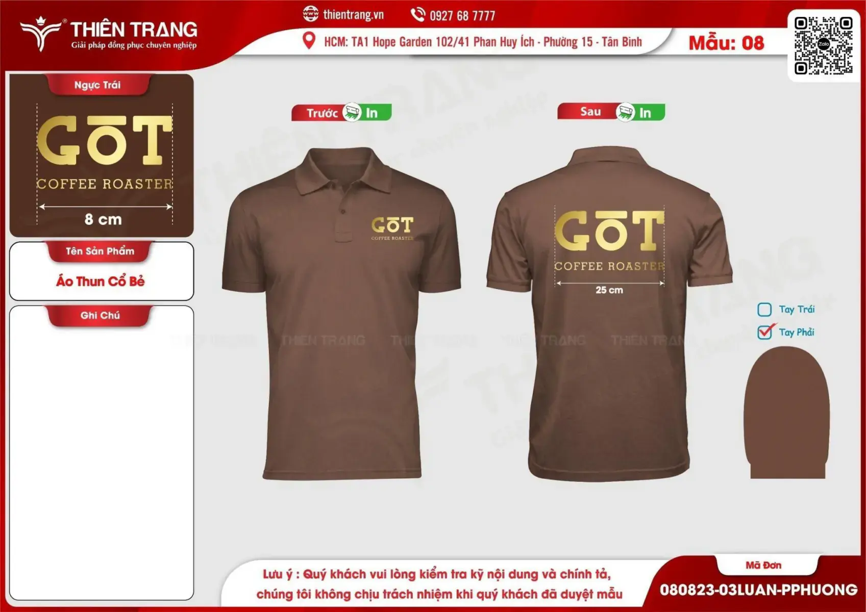 Maket áo thun cổ bẻ thương hiệu GOT Coffee Roaster Được xuất bản vào 26/09/2023 tại 1697 × 1200 trong Mẫu thiết kế đồng phục GOT Coffee Roaster