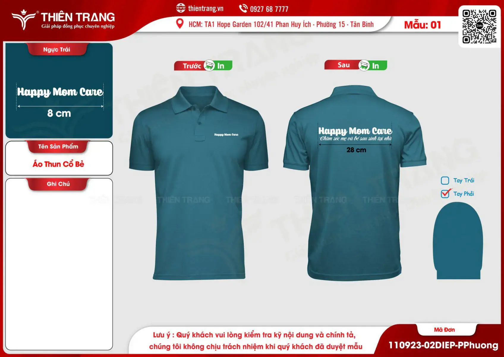 Maket áo thun cổ bẻ thương hiệu Happy Mom care Được xuất bản vào 19/09/2023 tại 1920 × 1358 trong Mẫu thiết kế đồng phục Happy Mom Care ← Trước