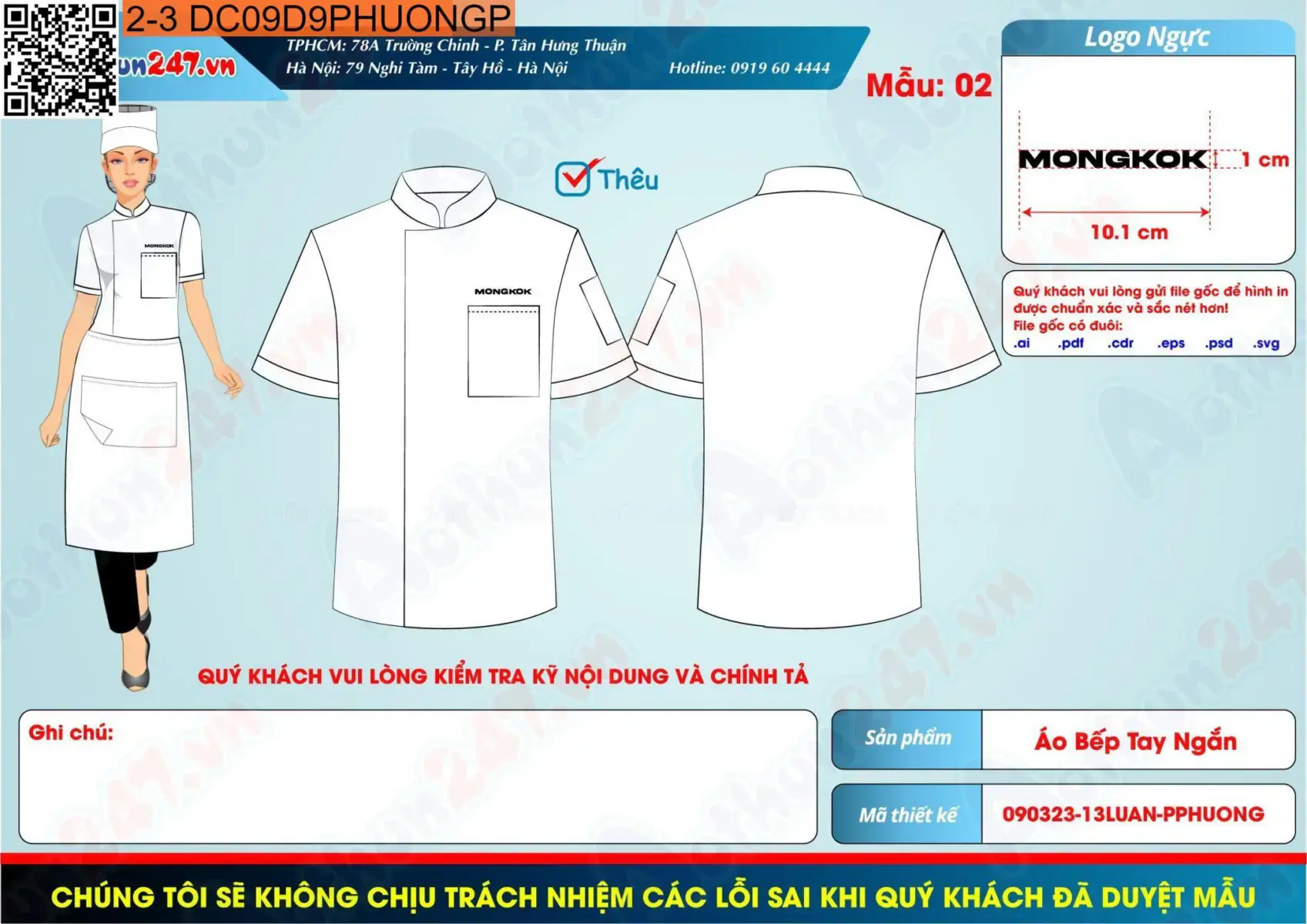Maket đầu bếp Mongkok Restaurant Được xuất bản vào 14/09/2023 tại 1697 × 1200 trong Mẫu thiết kế đồng phục Mongkok Restaurant ← TrướcTiếp theo →