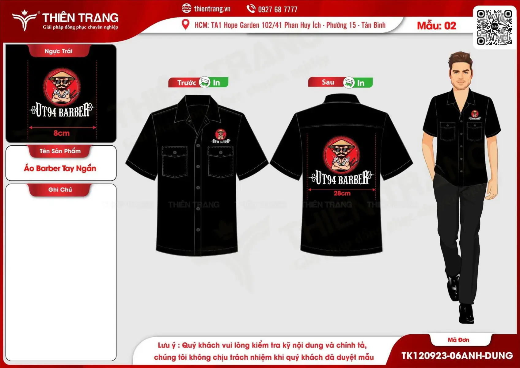 Maket áo barber tay ngắn thương hiệu UT94 barber Được xuất bản vào 19/09/2023 tại 1697 × 1200 trong Mẫu thiết kế đồng phục UT94 Barber