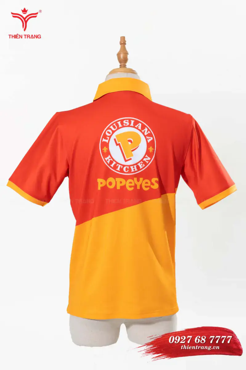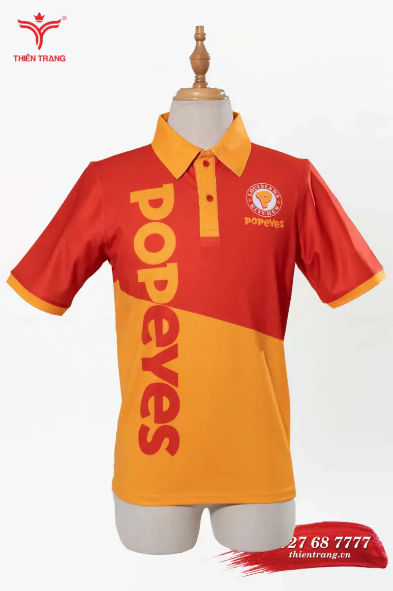 Áo polo đồng phục quán cafe TTCFEATCBF90 màu cam phối đỏ