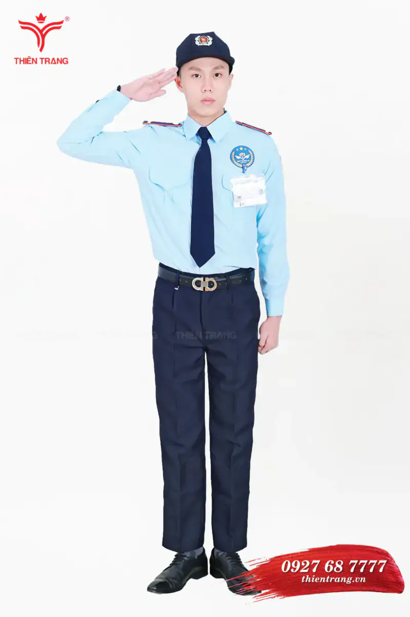 Đồng phục bảo vệ khách sạn có nón TTKSABV53 màu xanh dương nhạt