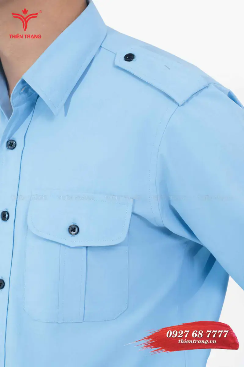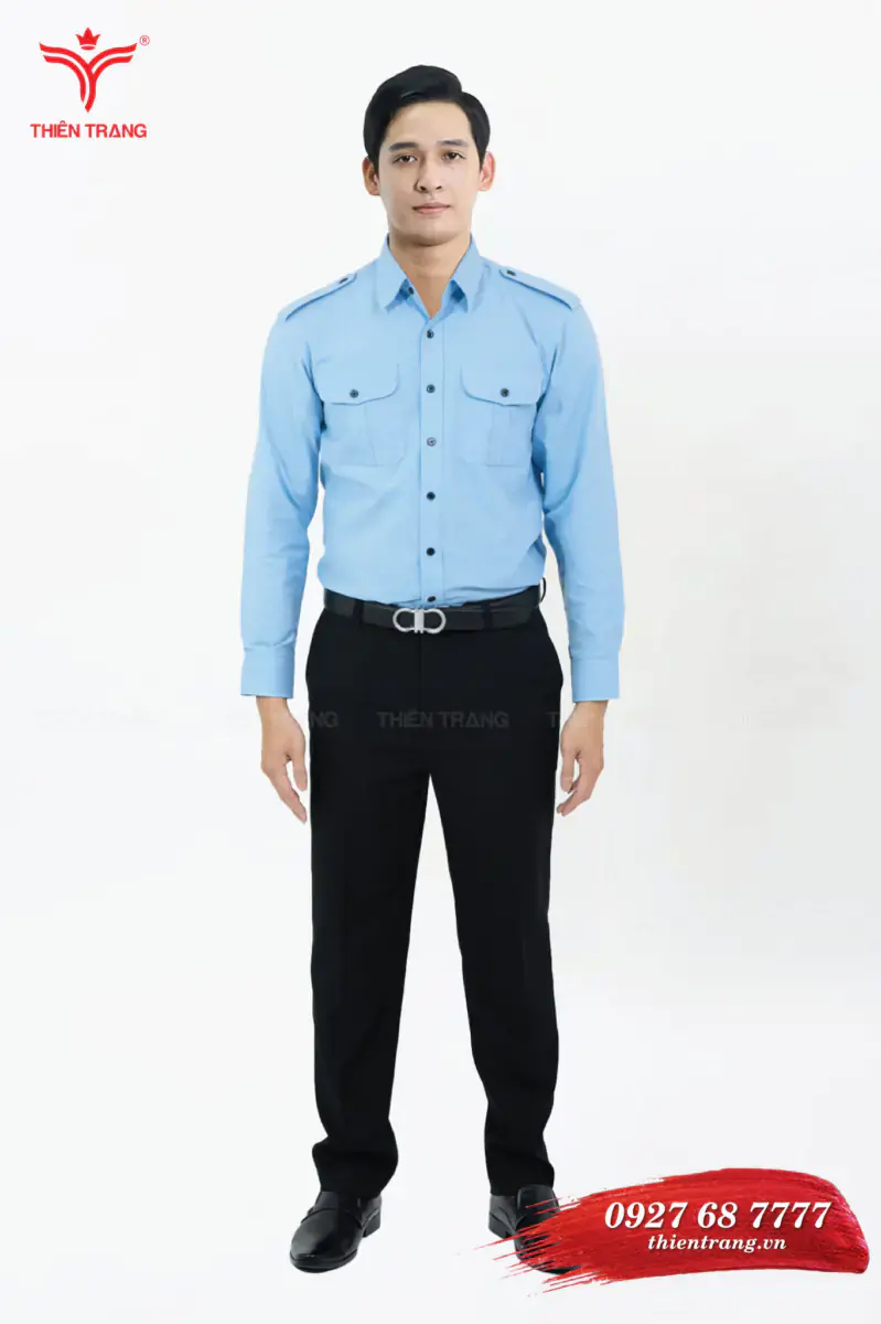 Đồng phục bảo vệ khách sạn TTKSABV53 màu xanh dương nhạt là mẫu đồng phục bảo vệ khách sạn với thiết kế tỉ mỉ và chất liệu chất lượng, màu xanh dương nhạt tạo điểm nhấn thanh lịch và dễ phối hợp với không gian khách sạn tạo ấn tượng mạnh với khách.