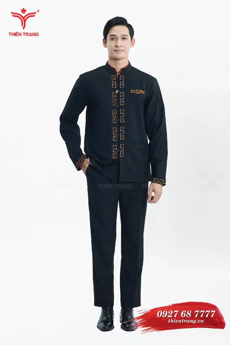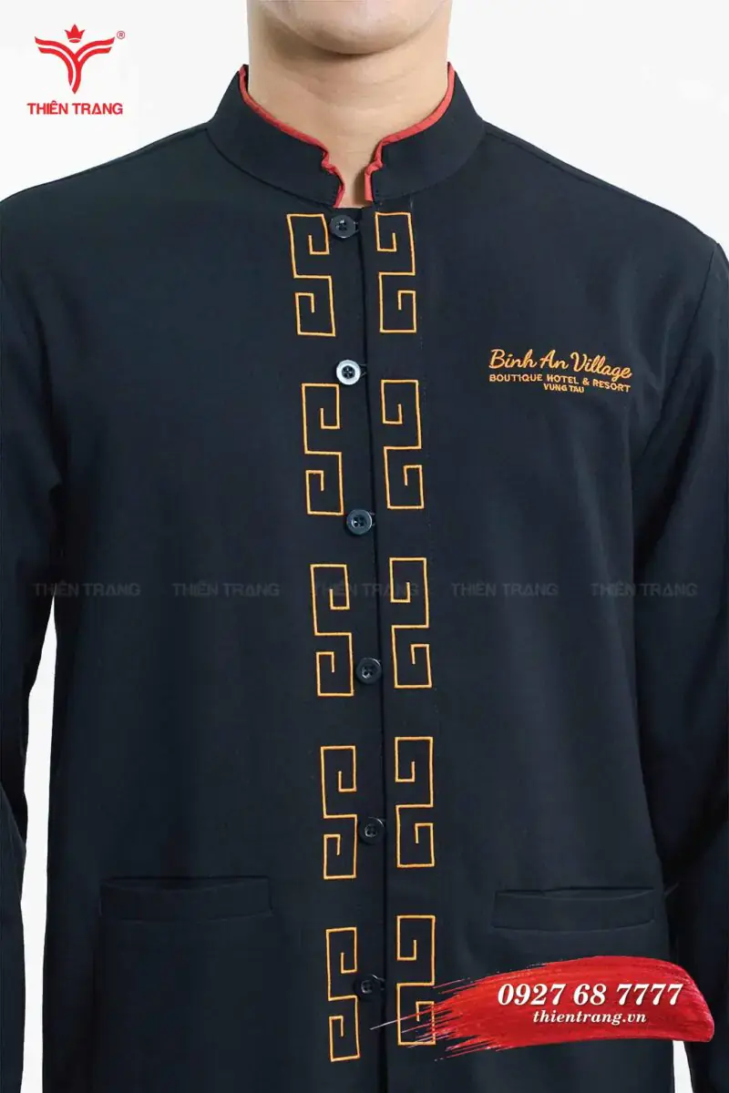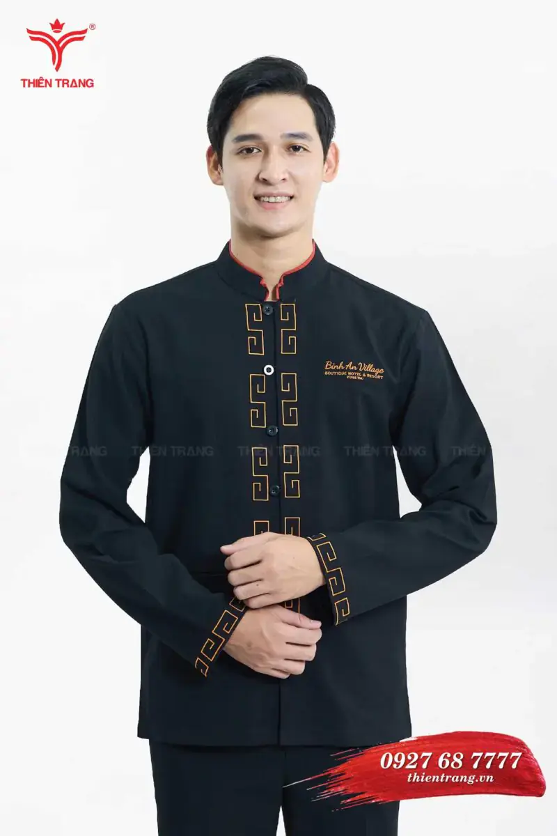 Đồng phục Bell khách sạn TTKSABLL21 màu đen phối cam là mẫu đồng phục bell, được thiết kế theo phong cách hoàng gia Châu Âu, thể hiện sự chuyên nghiệp và sự đồng phục thương hiệu trong mắt khách hàng.