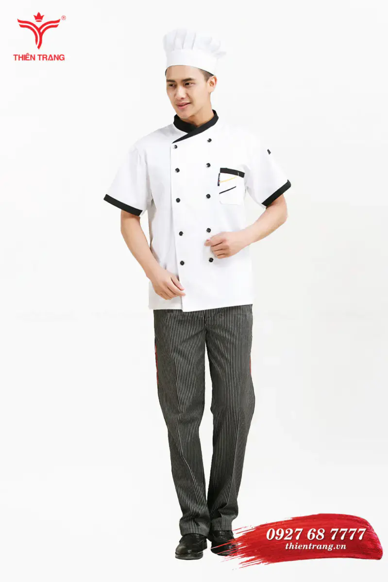 Đồng phục bếp khách sạn TTKSADBKS1A màu trắng phối đen