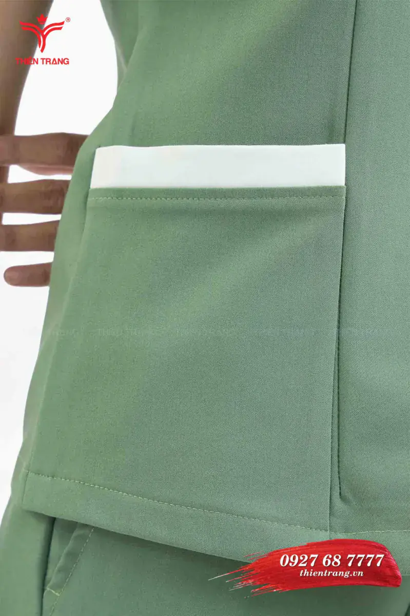Nhân viên spa thường làm nhiệm vụ massage body, chăm sóc da mặt, tóc,… chính vì thế để tạo không gian thoải mái và thư giãn, những bộ đồng phục Hàn Quốc có màu xanh thường được ưa chuộng. Mẫu đồng phục spa màu xanh này mang lại vẻ đẹp thanh lịch cho nhân viên và giúp cho họ có sự thoải mái nhờ chất liệu thun cotton mát mẻ.