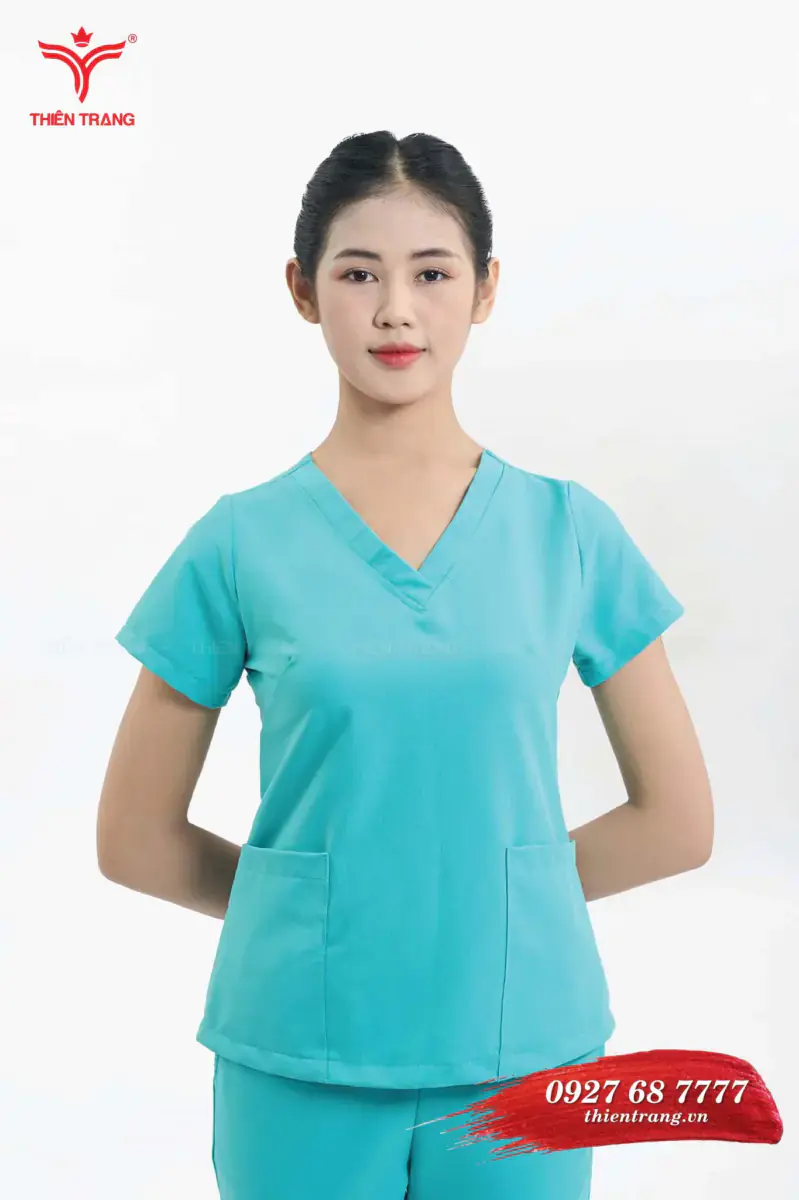 Đồng phục kỹ thuật viên spa TTSPAKTV5 xanh dương là mẫu đồng phục kỹ thuật viên spa được thiết kế với loại vải trơn màu xanh và áo cổ tim giúp tạo sự thoải mái và linh hoạt cho kỹ thuật viên khi làm việc. Bộ trang phục cho nhân viên này là một trong những mẫu giúp tôn lên gương mặt nổi bật của người mặc nhờ vào thiết kế cổ tim thanh lịch.