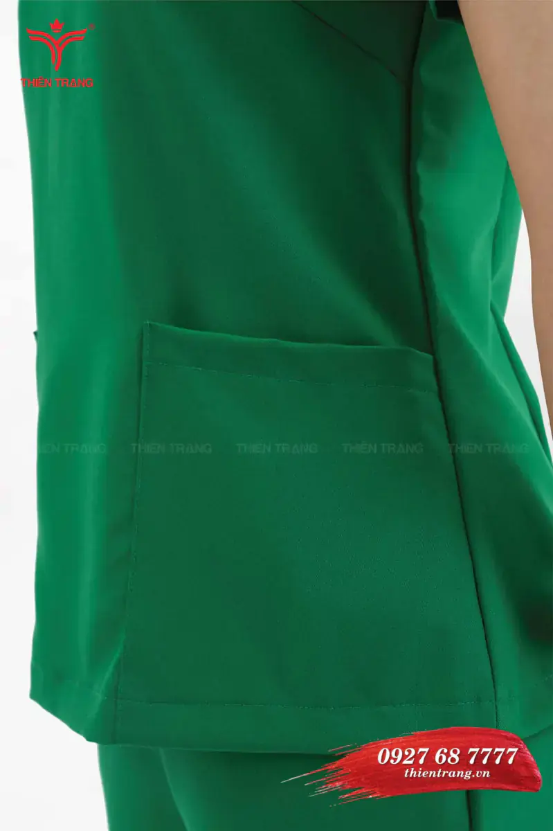 Khi may đồng phục spa cổ tim, túi nổi thường được may với đường chỉ tỉ mỉ, chắc chắn. Chất liệu Cotton lạnh hoặc Kaki thun có cùng chất liệu với áo. Túi đồng phục kỹ thuật viên spa được thiết kế hình vuông vừa phải, được may cân đối 2 bên áo tạo điểm nhấn và dùng để đựng những vật dụng cần thiết trong quá trình làm việc tại spa.