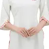- Điểm nhấn họa tiết tinh tế: Chi tiết họa tiết đỏ được phối ở cổ áo, tay áo và dọc phần tà tạo nên dấu ấn rõ nét cho thiết kế. Cách xử lý này giúp bộ đồng phục có chiều sâu, tránh cảm giác đơn điệu của nền trắng nhưng vẫn giữ được sự hài hòa và thanh lịch.
