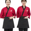 Bên cạnh áo Samue, bộ đồng phục còn được kết hợp với tạp dề phục vụ phong cách sushi bar, giúp tổng thể trang phục trở nên chuyên nghiệp và phù hợp với môi trường nhà hàng.