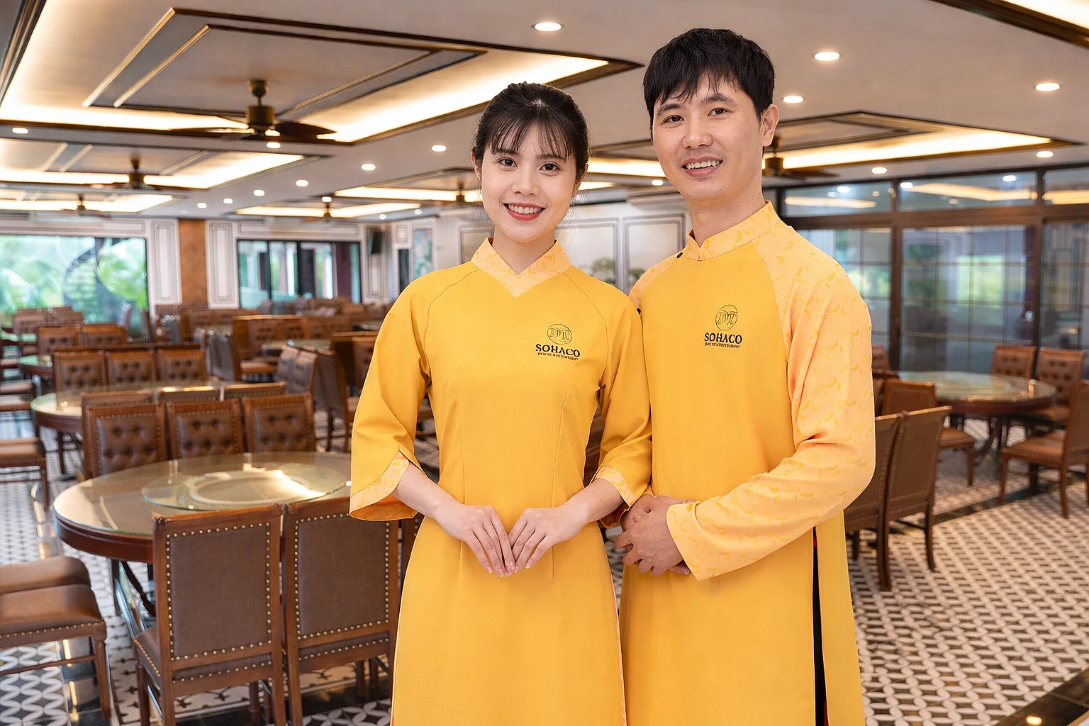 Đặc điểm của đồng phục lễ tân khách sạn Sohaco mang trong mình một sứ mệnh vừa truyền bá văn hóa Việt Nam đến với bạn bè quốc tế, vừa khẳng định đẳng cấp dịch vụ chuyên nghiệp của một điểm đến hàng đầu. Bộ trang phục không chỉ đơn thuần là quần áo, mà là nhịp cầu văn hóa nối liền giá trị truyền thống với hơi thở hiện đại thông qua những đặc điểm vượt trội: