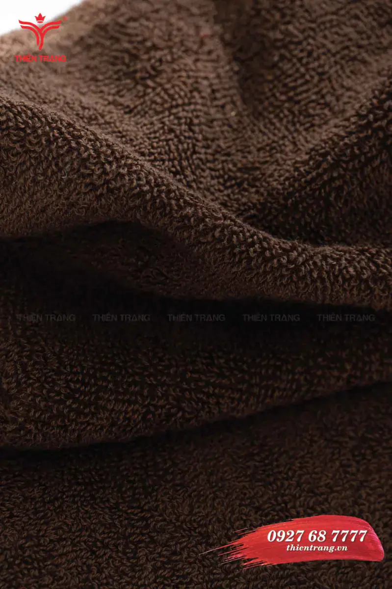 Khăn quấn tóc spa TTSPAKQT111 màu nâu đậm là mẫu khăn quấn tóc spa với chất liệu mềm mại và khả năng hút ẩm tốt, khăn giúp làm khô tóc nhanh chóng mà không gây tổn thương cho tóc.