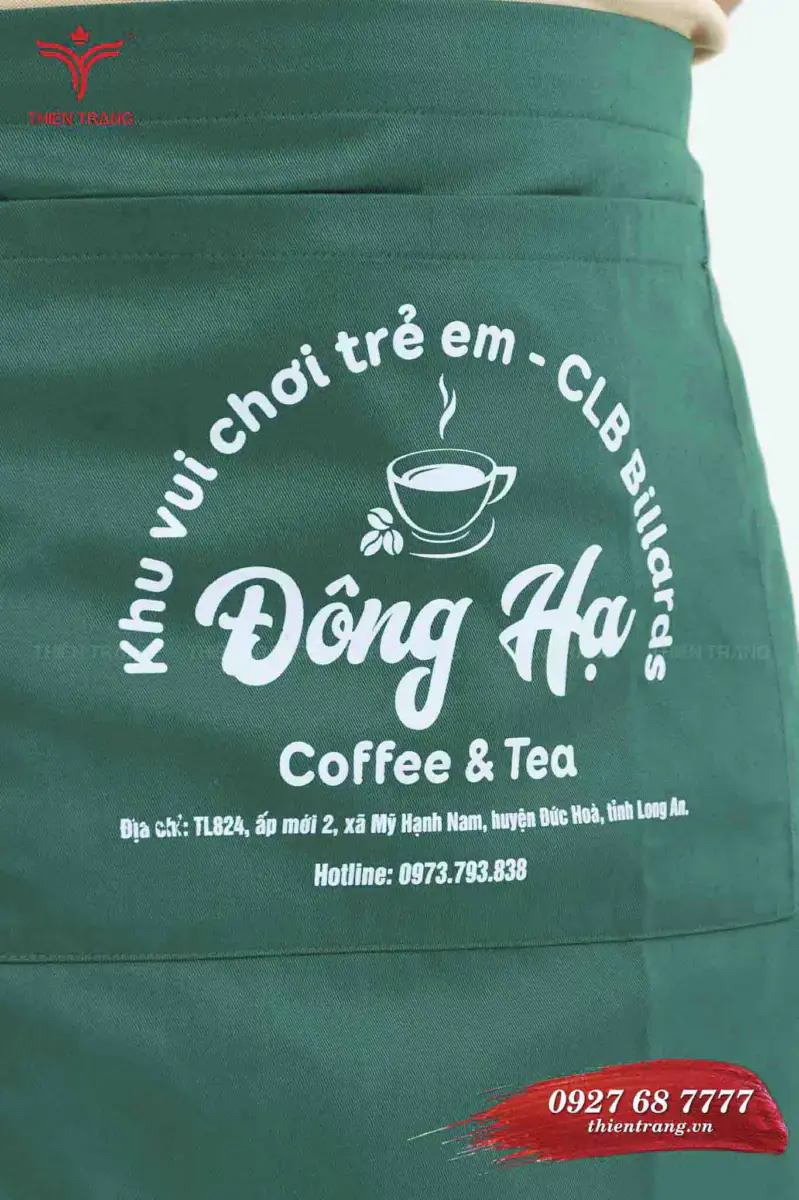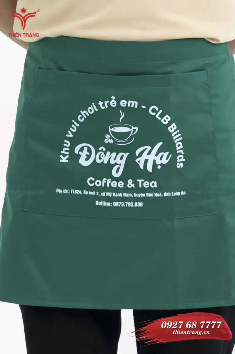 Tạp dề ngắn cafe TTCFETDN64 màu xanh lá phối trắng