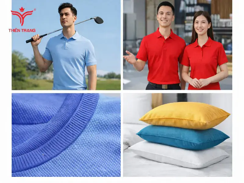 Bề mặt vải không quá mịn nên giúp mực in và chỉ thêu bám tương đối ổn định, hạn chế bong tróc hoặc nhòe chi tiết sau thời gian sử dụng. Một ưu điểm khác của thun cá sấu là tính linh hoạt về thành phần sợi. Tùy theo tỷ lệ cotton, polyester hoặc sợi pha, vải có thể được điều chỉnh để ưu tiên cảm giác mặc, độ bền hay khả năng bảo quản, từ đó mở rộng phạm vi ứng dụng trong nhiều dòng sản phẩm may mặc khác nhau.